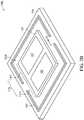 As mentioned above, heat can cause thermal stress and warpage in the 3DIC package structure leading to cracks in theconnectors130. In some embodiments, warpage is observed to occur at a periphery of the die, especially at the corners. Therefore, the second and third TIM layers144 and146 having the greater adhesion are disposed over a periphery of thefirst region112a. For example, the second and third TIM layers144 and146 are disposed over at least four corners of thefirst region112a, as shown inFIG. 6. Further, thesecond TIM layer144 covers two corners of the first semiconductor die120 and two corners of the second semiconductor die122, while thethird TIM layer146 covers another two corners of the first semiconductor die120 and another two corners of the second semiconductor die122, as shown inFIG. 6. Therefore, not only all corners of thefirst region112abut also all corners of the first and second semiconductor dies120 and122 are secured to the heat sink by the second and third TIM layers144 and146. Meanwhile, thefirst TIM layer142 with the higher thermal conductivity helps to dissipate the heat to theheat sink150.