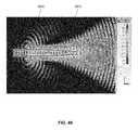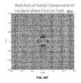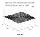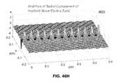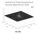 FIG. 46D is a graphical diagram4615 illustrating, example, non-limiting embodiments of a property of an electromagnetic wave having a cylindrical scattering wave mode in accordance with various aspects described herein. In particular, the real part of the radial component of {right arrow over (E)} of an incident wave, e.g., Re (Eir), is presented in the x-y or z=0 plane. As shown, Re (Eir) has positive and negative peaks near the region corresponding to the position of wire surface and extends outward in a spiraling ripple pattern consistent with a cylindrical wave.