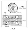 FIG. 46T is a graphical diagram4647 illustrating parameters of, an example, non-limiting embodiment of a cylindrical scattering wave mode in accordance with various aspects described herein. A graph of β/k0is shown as a function of γ/k0. The prior simulations assumed a zero line width in γ, or delta function in γ, theoretically requiring infinite power in the wave field. Applying a distribution function F(γ/k0) to the amplitude of eigensolutions labeled by γ, such as the Gaussian distribution centered at γ/k0=0.2 as shown, permits a finite power solution. Furthermore, operating within thelimited range4648 of β/k0implies gentle changes in β due to the small slope magnitude in this region, and less dispersion/diffraction due to smaller changes in phase velocity in the z direction.
