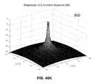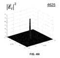 FIG. 46I is a graphical diagram4625 illustrating, example, non-limiting embodiments of a property of an electromagnetic wave having a cylindrical scattering wave mode in accordance with various aspects described herein. In particular, the magnitude squared of the incident wave electric field, |{right arrow over (E)}i|2, is presented in the x-y plane. As shown, this quantity peaks near the region corresponding to the position of wire surface.
