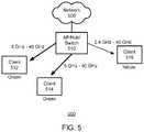 FIG. 5 illustrates awireless network environment500 where threat index based band/AP steering is provided, according to some implementations. As shown, thewireless network environment500 includes anetwork508, and includes an AP or hub or switch510 that connects to thenetwork508. Also shown areclient512,client514, andclient516, which connect to the AP/hub/switch510. In other implementations, thewireless network environment500 may not have all of the components shown and/or may have other elements including other types of elements instead of, or in addition to, those shown herein.