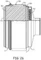 FIG. 26 is a partial, sectional view of an cleaner having a filter element containing a filtration media pack according to the present invention.