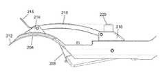 For example, in the variation of the cannula (1202) shown inFIGS. 13A-13D, the cannula (1202) may comprise a release bracket (1308), which may be position and arranged to temporarily hold the bumper plate (1300) in the lowered position. For example, the release bracket (1304) may comprise one or more projections (1306) or lips, or may otherwise be configured to engage the release bracket (1308) when the bumper plate (1300) is in the lowered position to hold bumper plate (1300) in the lowered position. To move the bumper plate (1300) to the raised position, a user may deflect or otherwise move the release bracket (1308) away from the bumper plate (1300), which may temporarily disengage the release bracket (1308) from the bumper plate (1300). When the release bracket (1308) is disengaged from the bumper plate (1300), the one or more spring elements (1304) may lift the bumper plate (1300) to the raised position. In some variations, the cannula (1202) may optionally further comprise a structure (such as a stop bar (1310)) positioned to contact the bumper plate (1300) and/or the one or more spring elements (1304) to limit the upward motion of the bumper plate (1300), which in turn may control the raised position of the bumper plate (1300).
