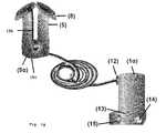 In a further non-limiting alternative form the device may have as shown inFIG. 1gtwo channel pipes (5) which by their mouths (8) are joined in one connecting pipe (5c). At the confluence of the channel pipes there may be a small storehouse (9a) that contains the fluid for expanding the periphery of the mouths or expandable portions (8). The connecting one pipe (5c) may end at and may be adapted to be in communication with an entrance (12) to/in a container (1a) of sufficient content of sea water or other useful fluid for therapeutic use herein. The container (1a) may bear in its base a pin (13) that may be moved by a thin mechanism supplied from a battery of 12 volt (14) and may be activated by simple pressure of a surface switch (15) providing movement of water or other therapeutic liquid therefrom to the nostrils (in some non-limiting examples, this may be 4, 6, and/or 8 cc of liquid). In a further non-limiting application as for example with this alternative device, the container (1a) may be of a multiple use or re-use type, for one person or for other users too, by the ability of refilling of the sea water or other therapeutic liquid. It may then be in some such examples that the connecting one pipe (5c) may be a personal consumable spare part attachable to thecontainer1athe part (5c) in some alternatives being of relatively fewer uses.
