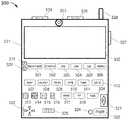 Returning to theillustrative receivers300 ofFIGS. 3A-3E. In this example,receiver300 includes various user inputs and adisplay screen332 which may be a touch screen335. The receiver may be continuously powered or may be turned on by depression of apower button322. The receiver may include aLED power indicator324 and/or simply use the screen backlighting as the power indicator. The receiver may also include one or more network connection indicators for indicating a connection status for one or more devices with one or more computer networks (e.g., the network between thegateway141 and theserver101, thegateway141 and a home network, thereceiver300 and thegateway141 and/or the server101). Thereceiver300 may be variously configured to includeweather button301,buttons319 and320 to select weather data in Fahrenheit and Celsius, respectively, emergency light(s)323,speaker button313,microphone button314,video button315,reset button316, andvolume button325, and/or other suitable interface buttons. Various ports may be included to include additional modules such as GPS modules and/or other communication and/or sensor devices.
