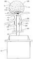 An additional embodiment of the current invention incorporates theWalzman disc balloon300, as illustrated byFIG. 6, intocatheter element12. Said incorporation is an alternate embodiment which is designed to help center the tip ofcatheter element12 to a location proximal to the center of the target aneurysm. It may also act as vertical positioning element by abutting the base of the mesh disc during positioning in the target aneurysm.