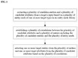 Optionally, establishing the plurality of correlations comprises generating an entity-attribute graph representing the plurality of correlations, each of which being a correlation between one the plurality of entities and one of the plurality of candidate attributes; the entity-attribute graph comprises a plurality of nodes and a plurality of edges, each of the plurality of nodes representing one of the plurality of entities or one of the plurality of candidate attributes, each of the plurality of edges representing one of the plurality of correlations; each of the plurality of edges is associated with a weight representing one of the plurality of correlation coefficients; wherein establishing the plurality of correlations further comprises generating an edge between nodes of one of the plurality of entities and one of the plurality of candidate attributes, thereby obtaining the plurality of edges; calculating a correlation coefficient corresponding to one of the plurality of edges; and assigning the correlation coefficient of the one of the plurality of edges as the weight for the one of the plurality of edges.