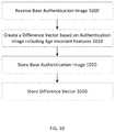 Refer to the example embodiments ofFIGS. 7 and 10.FIG. 10 is a simplified flowchart of initializing a biometric authentication profile using an Age Adapted Biometric Authentication System (as described inFIG. 7), in accordance with an embodiment of the present disclosure. As shown,System700 includes AABAS730, a connection tocellular network715, and a connection tonetwork720.User725 utilizesmobile device710 to communicate with AABAS730.User725 creates a biometric image usingmobile device710 and sends the biometric image to AABAS730. AABAS730 receives the base authentication image (Step1000) and processes the base authentication image. In this embodiment, processing includes creating a difference vector based on the base authentication image, wherein the difference vector includes age invariant features if they exist within the base authentication image (Step1010). AABAS730 stores the base authentication image in database740 (Step1020) and stores the created difference vector in database740 (Step1030).