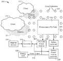 Althoughcloud detectors322 are described primarily as solar intensity sensors, it is contemplated thatcloud detectors322 may include any type of device configured to detect the presence of clouds or shadows cast by clouds. For example,cloud detectors322 may include one or more cameras that capture visual images of cloud movement. The cameras may be upward-oriented cameras located below the clouds (e.g., attached to a structure on the Earth) or downward-oriented cameras located above the clouds (e.g., satellite cameras). Images from the cameras may be used to determine cloud size, position, velocity, and/or other cloud attributes. In some embodiments,cloud detectors322 include radar or other meteorological devices configured to detect the presence of clouds, cloud density, cloud velocity, and/or other cloud attributes. In some embodiments,controller318 receives data from aweather service320 that indicates various cloud attributes.