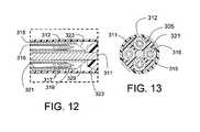 FIG. 22 is a circumferential cross section at S22-S22 of thecentral transition section460 ofFIG. 20. Looking in the distal direction one sees in cross section, thesheath312 andmiddle tube415. Themiddle tube415 is sealed into the distal portion of theplastic member405. One also sees the proximal end of the fourguide tubes315 and core wire411. It also shows how the fourinjector tubes316 enter the proximal ends of theguide tubes315.