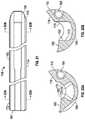 Referring toFIGS. 4C-4E, 5A, and 5B, thefirst dilator12 is a tubular member having anouter surface32, aproximal end33, adistal end34 and abore35 extending from theproximal end33 to thedistal end34. The first dilator is illustrated as having a substantially egg shaped transverse cross section whereby thefirst dilator12 is provided with alobe36. Thebore35 is offset from the longitudinal axis of thefirst dilator12 away fromlobe36. Thebore35 is sized to receive a stimulating probe (not shown). Alternatively, thefirst dilator12 may be provided with achannel38 formed near the tip of the lobe and extending the length of the first dilator12 (FIG. 6), or thefirst dilator12 may have an open side37 opposite the lobe36 (FIG. 4E).