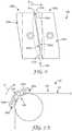 FIG. 9C is a simplified top view representation of an incrementally-later point in time in which thepads180a,180bhave further progressed along the path of travel T1 (FIG. 3) and in the direction of transport X. While thefilm50 is still not yet in contact with thesecond pad180b, the area ofcontact320 at thecontact face194aof thefirst pad180ahas progressed in a direction of the trailingedge202a(i.e., as compared to the arrangement ofFIG. 9B, thegrip line322 is closer to the trailingedge202a).