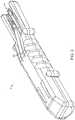 The proximalupper spring18 may be tapered laterally in the proximal and/or downward directions; for example, as shown inFIG. 4. The proximalupper spring18 may have any suitable cross-section perpendicular to the longitudinal axis of theloader2 that allows it to engage thetrough12 and/or other portion of thecartridge4 effectively. For example, where thetrough12 is substantially V-shaped and/or tapered in the downward direction, the cross-section perpendicular to the longitudinal axis of theloader2 of the proximalupper spring18 similarly may be substantially V-shaped and/or tapered in the downward direction.
