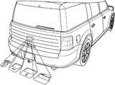 FIGS. 2-7 are top plan views of a vehicle equipped with a projection light module and sensing system in accordance with aspects of the present invention, showing how a user may open and close a door of the vehicle in accordance with the present invention;