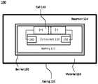Thecasing120 may further include additional layers, structures, or components. For example,additional batteries122 andreservoirs124 may be provided. Additional layers may be included in or oncasing120 for various purposes, such as structural stability, chemical resistance, or other tamper prevention purposes, or the like. Such additional layers may be laminated (or otherwise mounted) on or withincasing120. For example, metal layers, radiation blocking layers, or the like might be included in or oncasing120. Similarly, metal meshes may be embedded in, included within, or laminated oncasing120 for various purposes.