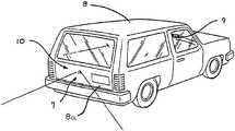 Although shown at a rear portion of a vehicle,camera18 andcamera module10 may be positioned at any suitable location on the vehicle, such as within a rear panel or portion of the vehicle, a side panel or portion of the vehicle, a license plate mounting area of the vehicle, an exterior mirror assembly of the vehicle, an interior rearview mirror assembly of the vehicle or any other location where the camera may be positioned and oriented to provide the desired view of the scene occurring exteriorly or interiorly of the vehicle. The camera module of the present invention is particularly suited for use as an exterior camera module. However, the camera module may be positioned at an interior portion of the vehicle, such as at or in an interior rearview mirror assembly or accessory module at or near an interior rearview mirror assembly, to provide an image of an interior scene or of an exterior scene through a window or windshield of the vehicle, without affecting the scope of the present invention. The image captured by the camera may be displayed at a display screen or the like positioned within the cabin of the vehicle, such as at an interior rearview mirror assembly (such as disclosed in U.S. patent application Ser. No. 09/793,002, filed Feb. 26, 2001, now U.S. Pat. No. 6,690,268, which is hereby incorporated herein by reference), or elsewhere at or within the vehicle cabin, such as by using the principles disclosed in U.S. Pat. Nos. 5,550,677; 5,670,935; 5,796,094; 6,097,023 and 6,201,642, and/or in U.S. patent application Ser. No. 09/199,907, filed Nov. 25, 1998, now U.S. Pat. No. 6,717,610, which are hereby incorporated herein by reference.