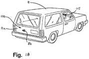 FIG. 18 is a rear perspective view of a vehicle with a camera housing device in accordance with the present invention positioned thereon and positioned in its in-use or operational position;