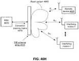 Turning now toFIG. 46K, a flow diagram4695 is shown illustrating an example, non-limiting embodiment of a method in accordance with various aspects described herein. In particular, a method is presented for use with one or more functions and features described in conjunction withFIGS. 46F-46J.Step4696 includes generating, via a base transceiver station, a consolidated steering matrix in accordance with transmission of first radio frequency (RF) signals to a remote device in an RF band.Step4697 includes converting, via a remote radio head (RRH), the consolidated steering matrix to a converted steering matrix that facilitates transmission of first millimeter wave (MMW) signals to the remote device in a MMW frequency band via an antenna in accordance with an antenna beam pattern having at least one selected null direction, wherein the MMW frequency band is above the RF band.Step4698 includes generating, via the RRH, the first MMW signals in accordance with the converted steering matrix.Step4699 includes transmitting, via the antenna and in accordance with the antenna beam pattern having the at least one selected null direction, the first MMW signals to the remote device in the MMW frequency band.