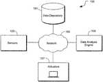 Data repository101 may receive data captured bysensors103. In some embodiments, data captured bysensors103 may be transmitted directly todata analysis engine109. Data stored inrepository101 may be sorted and analyzed bydata analysis engine109. Data stored indata repository101 may be so voluminous and complex (e.g., structured/unstructured and/or constantly changing) that traditional data processing application software may be inadequate to meaningfully process the data (e.g., “big data”).Data analysis engine109 may include software applications specially designed to process large volumes of data (“big data analytics”).