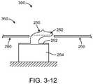 FIG. 3-11 shows step355 of removing thelayer115 of Parylene™ polymer film250 from the mold with the film comprising a 3D self supporting structure and suitable for supporting with a backing material for cutting. Thesupport120 and the Parylene™ film comprising theresilient retention structure110 are shown removed from the mold. The thin film can benefit from a stiff backing material in order to be accurately cut with acceptable edge condition. The film can be supported with a backing material such as polyethylene glycol (hereinafter “PEG”) In order to accomplish this, the intact free film is filled with heated liquid polyethylene glycol (PEG) which hardens when it cools to room temperature as described herein. Due potentially excessive shrinkage, the film can be lightly pressurized to force the outer dimensions of the film to be maintained during the PEG cooling.