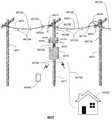 In addition, some of thewaveguide systems4673A,4673B,4677A and4677B can be configured to repeat or regenerateelectromagnetic waves4672W across spans of thetransmission medium4672. For example,waveguide system4677A can be communicatively coupled by a tethered (e.g., optical fiber, coaxial cable, etc.) orwireless interface4678. A supportingdevice4679 holding a portion of thetransmission medium4672 betweenspans4672B and4672C (e.g., an insulator supporting a power line) can be bypassed by way of the tethered orwireless interface4678. Accordingly, thewaveguide system4677A can be configured to generate, responsive to receivingelectromagnetic waves4672W alongspan4672B, repeated or regeneratedelectromagnetic waves4672W (as described earlier), which can be supplied towaveguide system4677B via the tethered orwireless interface4678 for transport inspan4672C. Similarly, thewaveguide system4677B can be configured to generate, responsive to receivingelectromagnetic waves4672W alongspan4672C, repeated or regeneratedelectromagnetic waves4672W, which can be supplied towaveguide system4677A via the tethered orwireless interface4678 for transport inspan4672B. This technique avoids distortion that may be caused by the supportingdevice4679 toelectromagnetic waves4672W propagating betweenspans4672B and4672C.