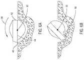 FIGS. 6A through 6E are a sequence of drawings that show the results of the cutting edge of the bur of this invention rotating against tissue when the bur head is pushed laterally against the tissue;