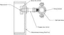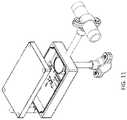 FIGS. 10A, 10B, and 11 show alternate views of a housing and the components described in connection withFIG. 9 in accordance with some embodiments. InFIGS. 10B and 11, both a horizontal mounting arrangement (include stud and pipe clamp) and a vertical mounting arrangement (including stud and pipe clamp) are shown. In actual use, only one of these mounting arrangements is required.