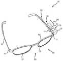 As described herein, a guide may extend along a temple between a first location on the temple and a second location on the temple. In some examples, the first guide may be formed on an outside side of the temple, e.g., as illustrated in the examples inFIGS. 1-4. The first location on the temple may be a location at a forward end of the temple and the second location on the temple may be a location near an aft end of the temple. For example, the second location may be a location which is a distance of about ⅓ of the length of the temple forward of the aft end of the temple. In some examples, the guide may extend a certain percentage of the length of the temple, for example the guide may extend about 50%, about 60%, about 70%, or about 80% of the length of the temple or anywhere between about 40% to about 90% of the length of the temple.
