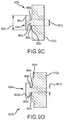 FIGS. 9A-9D are cross-sectional views of temples including guides according to some examples herein, for example a non-securing guide (FIG. 9A), and securing guides (FIGS. 9B, 9C, 9D);