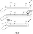 FIG. 7 are views of temples including guides according to examples of the present disclosure;