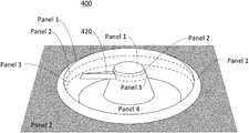 While not illustrated inFIG. 4, text and/or numbers may be displayed on one or more panels. For example, numbers may be displayed next to the slanted surface of thedial400 on a second panel and a gradient may be displayed on the second panel and the third panel to provide a tapered edge to the text and/or number. The text and/or numbers may be displayed as having actual depth across two layers and may appear as having a 3D profile due to being tapered at the edges, rather than just being flat in appearance. Displaying the text and/or numbers onpanels2 and/or3 may allow for the text and/or numbers to appear as floating between the first panel and the fourth panel.