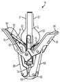 To assist in inserting thefixation device14 through ahemostatic valve1090, a fixation device introducer may be used. For example, when thefixation device14 is loaded on adelivery catheter300 and aninner guide catheter1020, insertion of thefixation device14,delivery catheter300 andinner guide catheter1020 through anouter guide catheter1000 involves passing thefixation device14 through ahemostatic valve1090 on theouter guide catheter1000. To reduce any trauma to thefixation device14 by thehemostatic valve1090, a fixation device introducer may be used. An embodiment of afixation device introducer1420 is illustrated inFIG. 64B. Theintroducer1420 includes a loading body1422 and aninsertion endpiece1424. Thefixation device14 is loaded into the loading body1422 and into theinsertion endpiece1424 to approximately the dashedline1428. Theinsertion endpiece1424 has a split end creatingindividual split sections1430, in this embodiment, foursplit sections1430. By compressing thesplit sections1430, theendpiece1424 forms a taper. Such a taper is then inserted through ahemostatic valve1090, so that theinsertion endpiece1424 creates a smooth passageway through the valve for thefixation device14. Once theinsertion endpiece1424 is inserted through thevalve1090, thefixation device14, and attacheddelivery catheter300 andinner guide catheter1020, may then be advanced through thefixation device introducer1420. Thefixation device introducer1420 also includes a hemostatic valve within the loading body1422 to prevent any backbleeding or leakage through theintroducer1420.