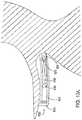 With reference now toFIG. 6, the same segment ofdistal portion302 is shown, butmandrels314 have been withdrawn from twomandrel apertures322, to releaseanchors310 fromhousing306. Additionally,expandable member308 has been expanded to drive anchors out ofhousing306.Anchors310, having been released frommandrels314, have begun to change from their undeployed, retained shape to their deployed, released shape.