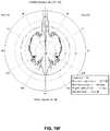 FIGS. 19E and 19F are block diagrams illustrating example, non-limiting embodiments of a dielectric antenna coupled to a lens with ridges and corresponding gain and field intensity plots in accordance with various aspects described herein.