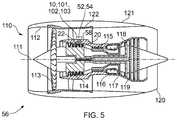 FIG. 5 illustrates a schematic cross sectional side view of a gas turbine engine and an apparatus according to various examples; and