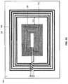 As shown inFIG. 3B, thefirst inductor coil76 is electrically connected in series to the secondinterior inductor coil78 that is positioned within an inner perimeter formed by thefirst inductor coil76. As shown, asecond end82 of thefirst inductor coil76, located at an inner most end of thecoil76 is electrically connected to afirst end84 of thesecond inductor coil78. Thefirst end84 of theinterior inductor coil78 is disposed at the end of an outer most filar track of thesecond inductor coil78. Thesecond inductor coil78 terminates at a second inductor coilsecond end86 which is disposed at an inner most location of thesecond inductor coil78.