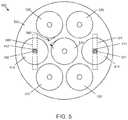 Various embodiments of differently configured DRA arrays will now be described in conjunction withFIGS. 21-24. For example,FIG. 21 is a top view of aDRA array2100 suitable for use in a microwave heating apparatus, in accordance with another example embodiment.DRA array2100 includes seven horizontally-arranged dielectric resonators2110-2112 coupled to asubstrate2130, including twoexciter resonators2110,2111 and adjacentparasitic resonators2112. In addition, although not shown,DRA array2100 may include one or more additional resonators stacked on either or both of theexciter resonators2110,2111.