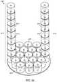 FIGS. 21-23 are top views of DRA arrays suitable for use in a microwave heating apparatus, in accordance with several other example embodiments;