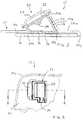 Backplate20 may include an attachment element or elements (such as an annular ring or tab or annular prongs or annular snaps or the like) formed or established at the rear of thebacking portion20afor attaching theback plate20 andreflective element18 to a mirror actuator (such as a mirror actuator as known in the art and/or as described in U.S. Pat. Nos. 7,080,914; 7,073,914; 6,916,100; 6,755,544; 6,685,864; 6,467,920; 6,362,548; 6,243,218; 6,229,226; 6,213,612; 5,986,364 and 5,900,999, which are hereby incorporated herein by reference herein in their entireties), which is adjustable or operable to adjust a viewing angle of mirrorreflective element18. When the mirror reflective element is canted or angled partially toward the driver of the host vehicle (which is typically the orientation of the reflective element during use so as to provide a generally rearward field of view to the driver of the host vehicle), there is sufficient space within the mirror casing at or near the outboard portion of the mirror assembly for the indicator mounting portion and signal indication module. The back plate and signal indication module of the present invention thus utilizes the space within the mirror head or casing that is already available and typically not used or occupied by other components.