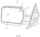 Optionally, the back plate may include a perimeter framing portion orbezel portion20cthat extends around the perimeter edges of the reflective element to support the reflective element and frame the reflective element at the mirror assembly (such as by utilizing aspects of the mirror assemblies described in U.S. patent application Ser. No. 11/520,193, filed Sep. 13, 2006, now U.S. Pat. No. 7,581,859, and/or PCT Application No. PCT/US07/82099, filed Oct. 23, 2007 and published May 2, 2008 as International Publication No. WO 2008/051910, which are hereby incorporated herein by reference in their entireties). The perimeter bezel portion may be narrow or small depending on the particular application of the reflective element and mirror reflector sub-assembly. Optionally, the mirror reflector sub-assembly may comprise a bezelless or frameless reflective element (such as the types described in U.S. patent application Ser. No. 11/226,628, filed Sep. 14, 2005 and published Mar. 23, 2006 as U.S. Publication No. US-2006-0061008; Ser. No. 10/533,762, filed May 4, 2005, now U.S. Pat. No. 7,184,190; and/or Ser. No. 11/021,065, filed Dec. 23, 2004, now U.S. Pat. No. 7,255,451, and/or PCT Application No. PCT/US2006/018567, filed May 15, 2006 and published Nov. 23, 2006 as International Publication No. WO 2006/124682, which are hereby incorporated herein by reference in their entireties), whereby the back plate may not include a perimeter framing portion or bezel portion around the perimeter of the reflective element.