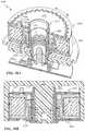 FIG. 16C showsfriction disc1518 after it has arrived in the second position and is contactingratchet assembly1402. Force applied byhelical spring1524 pushes a roughened surface offriction disc1518 againstratchet assembly1402 in order to generate static friction that opposes rotation ofratchet assembly1402. This static friction can prevent rotation ofratchet assembly1402. Relative motion of axially protruding teeth ofknob armature1404 with respect to stationary radially protruding teeth of the teethed armatures then results in ratcheting feedback being provided asknob1502 is rotated.