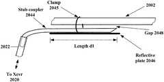 Turning now toFIG. 20C, a block diagram is shown illustrating an example, non-limiting embodiment of a coupling system in accordance with various aspects described herein. In particular, a coupling system is shown for use with the transmission system ofFIG. 20A,transmission device101 or102 presented in conjunction withFIG. 1, with any of the waveguide systems previously described, and/or as a launcher that launches guided electromagnetic waves on atransmission medium2002. The coupling system includeswaveguide2022, astub coupler2044 and an optionalreflective plate2046.
