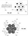 FIGS. 46D, 46E, 46F and 46G are block diagrams illustrating example, non-limiting embodiments of a transmission medium for propagation of electromagnetic waves in accordance with various aspects described herein.FIG. 46D depicts a plurality of MMIC's4652, as previously discussed in the subject disclosure, coupled toconductive contacts4662 viaconductive wires4654 of the MMIC's4652. Theconductive wires4654 can be coaxial wires, bare conductors, or other suitable connection means. Theconductive contact4662 corresponds to a conductive endpoint of one of a plurality ofinsulated conductors4660. A tapered supportingstructure4658 can be coupled to the plurality ofinsulated conductors4660. The tapered supportingstructure4658 can include ingress holes4661 (not visible), eachingress hole4661 enabling insertion of a corresponding insulated conductor of the plurality ofinsulated conductors4660. The tapered supportingstructure4658 can further includeegress holes4656, eachegress hole4656 enabling the MMIC's4652 to access a corresponding insulated conductor of the plurality ofinsulated conductors4660. Eachinsulated conductor4660 can be cut (or sliced) in conformance to the taperedhole4656, thereby exposing theconductive endpoint4662 surrounded by an insulation layer4665 (see cross-sectional view inFIG. 46D).