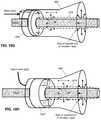 FIGS. 22A and 22B are block diagrams illustrating example, non-limiting embodiments of a waveguide device for launching hybrid waves in accordance with various aspects described herein.
