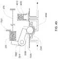 Referring now toFIGS. 92G-92H, an inserting cartridge bolt locking mechanism for use with an inserter, such as the one shown inFIGS. 91A-92F, as5100 is shown. The cartridge bolt locking mechanism can function as an interlock to prevent accidental firing while the mechanism is being cocked. The locking mechanism includes acatch5420, which when engaged in acatch recess5410, prevents downward movement of thecartridge bolt5380. As shown inFIG. 92G, when the cockinglever5145 is in a closed position, the cockinglever5145 contacts acatch lever5440, which rotates thecatch5420 and prevents thecatch5420 from inserting into thecatch recess5410. Acatch spring5430, disposed between thecatch5420 and acatch spring support5450, is in a compressed positioned. Thecartridge bolt5380 and triggerhammer5340 are free to move. As shown inFIG. 92H, when the cockinglever5145 is rotated into a downward position, thecatch lever5440 is released, thereby allowing thecatch spring5430 to force thecatch5420 to insert into the recess (here thecatch5420 is shown inside the recess, but the recess is shown inFIG. 92G as5410); downward movement of thecartridge bolt5380 is thereby prevented. Return of the cockinglever5145 then returns thecatch5420 to an unlocked position. Thecartridge bolt5380 is then free for downward movement in the triggering process.