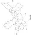 Referring now to bothFIGS. 98 and 99, embodiments in which anadhesive patch3100 has been divided into at least two smaller adhesive patches are shown. In these embodiments, theadhesive patch3100 is divided into two adhesive patches,3410 and3420, each havingadhesive members3111 radially arranged around acentral void3430. The two adhesive patches,3410 and3420, each span a semi-circle of about 180°, but other configurations could be used such as: three patches, each spanning 120,° or four patches each spanning 90°. In some embodiments, the adhesive can include greater than four patches. The configurations described with respect to these embodiments follow theformula 360°/n where n is the number of patches. But, in other embodiments, depending on the shape of the device, the formula shown and described here does not apply. In still other embodiments, the patches may also cover more than 360°, and thus overlap.
