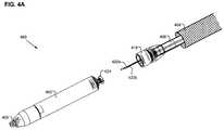 Still referring toFIGS. 4C and 4D, thedocking cap418, which is supported on the distalend catheter shaft406 of the delivery catheter, can include a torque slot430 (shown inFIG. 4C) sized and configured to mate with a torque key432 (shown inFIG. 4D) disposed on a proximal end of the pacemaker. Thetorque slot430 is located indocking cap418 and coupled to atorque shaft431, which runs the length ofcatheter shaft406 of the delivery catheter to extend into the handle (not shown). InFIGS. 4C and 4D,torque key432 is shown as a “male” key on the proximal end ofpacemaker402, andtorque slot430 is shown as a “female” key, but it should be understood that in other embodiments, the “male” key can be located on theattachment feature418, and the “female” key can be disposed on the pacemaker. It should also be appreciated thatkey432 and slot430 can comprise any number of shapes, such as square, rectangle, triangle, pentagon, hexagon, cross, “X”, etc., so long as key432 fits withintorque slot430 for the transfer of rotation torque between the twoelements430,432. Once the tethers are locked within the attachment feature, the tethers can be pulled proximally to pullattachment feature424 and the pacemaker towards the catheter and to attach the pacemaker to the delivery catheter, thereby engagingtorque slot430 with torque key432 (as shown inFIG. 4G).