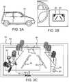 Thecamera46 may produce aview70 as shown inFIG. 2C. Theview70 is toward the rear of thevehicle45. In this case, theview70 is of a typical driveway. The monitor only displays theROSI85, as shown inFIG. 2C. Although the ROSI85 is in general of most importance while backing up from a driveway, nevertheless, the driver of thevehicle45 may often desire to observe areas enclosed by a region of general interest ROGI80. As shown inFIG. 2C, the ROGI80 includes the ROSI85. For instance, areas in the ROGI80 below the ROSI85 might reveal acat91 crossing the driveway, areas in the ROGI80 above the ROSI85 might reveal adog92 crossing the driveway, areas in theROGI80 to the right of the ROSI85 might reveal aball93 approaching, and areas in theROGI80 to the left of the ROSI85 might reveal abiker90 crashing down, for example.