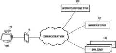 Referring toFIG. 3, theAP module300 may be connected with the communication network through thefirst communication220 and may establish a communication link with external servers such as the information providing server110 (referred to in this example as a “wallet server”), themanagement server120, and thebank server130. Thewallet server110 interoperates with theAP module300 and performs a function of providing card information for each relevant bank/card company. Themanagement server120 may include a service provider trusted service manager (“SP-TSM”)server125 and a key management system (“KMS”)server127 therein. The SP-TSM server125 is one component of a NFC ecosystem and may perform a function of remotely managing and distributing a contactless communication application in theSE module350. TheKMS server127 may perform a function of managing access authority for applets in theSE module350. Thebank server130 interoperates with a bank application in theAP module300 and may provide a card installation and personal card information.