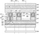 First axis341 intersects the first, second, and third metal lines and the first and second voids.Second axis342, which is orthogonal to thefirst axis341, intersects theconformal layer331 and theadditional layer332.Third axis343, which is orthogonal to thefirst axis341, intersects the second metal line312 and theadditional layer332.
